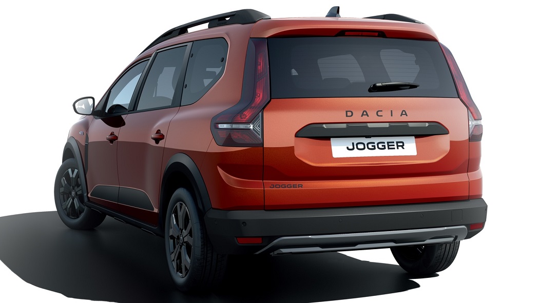 - Jogger dispune de o parte frontală verticală, cu o grilă amplă, specifică mărcii Dacia, de aripi față și spate profilate și de o capotă cu bosaje proeminente. Ampatamentul mare și consolele scurte dau impresia că roțile sunt amplasate aproape de extremitățile vehiculului. Eleronul situat în partea superioară a hayonului conferă vehiculului un aspect dinamic. Luneta hayonului este încadrată de blocurile optice dispuse pe verticală și a căror bază curbată urmărește profilul aripilor spate.